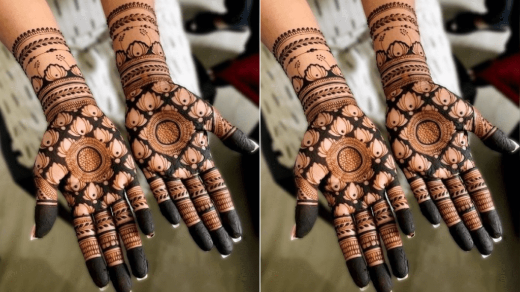 शाही फ्रंट हैंड मेहंदी डिज़ाइन हर महिला-लड़की के हाथों की सुंदरता और ग्रेस को बढ़ाती है। पारंपरिक से लेकर मॉडर्न हर ड्रेसिंग स्टाइल के लिए इसका आकर्षण कभी कम नहीं होता। अगली बार जब कोई खास पर्व या उत्सव आए तो बारीक फूलों जाल वर्क और पत्तियों वाले इस खूबसूरत शाही मेहंदी डिज़ाइन को ज़रूर आज़माएँ और अपनी पारंपरिक खूबसूरती में चार चांद लगाएँ!