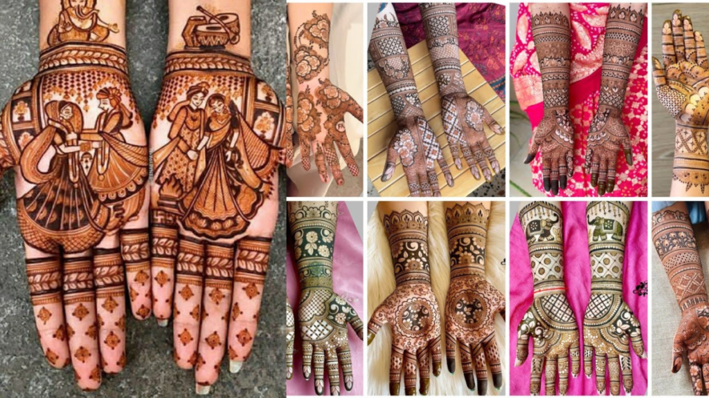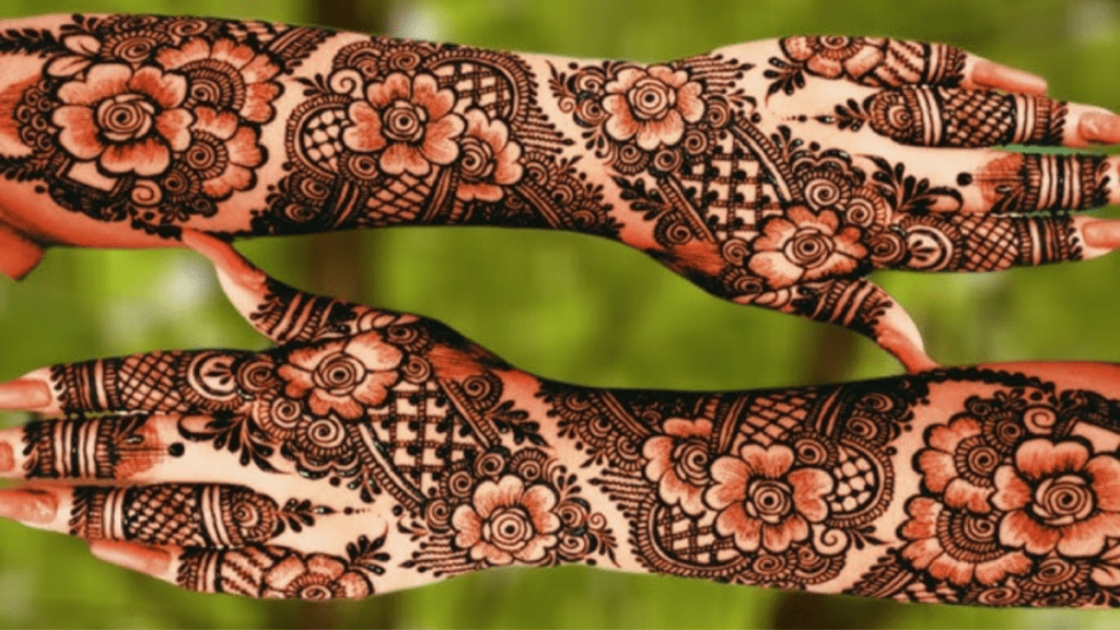 हाथों पर ऐसा डिजाइन जैसे पारंपरिक दुपट्टा हो इसमें फ्लोरल और बारीक जाल रहता है।