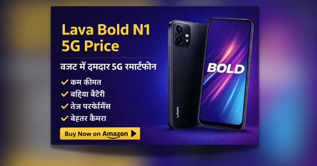Lava Bold N1 5G Price : अभी भारत में बजट स्मार्टफोन यूज़र्स के लिए सबसे चर्चित टॉपिक बन गया है। हर कोई ऐसा फोन चाहता है जो कम कीमत में तेज 5G, बढ़िया कैमरा और दमदार बैटरी दे।