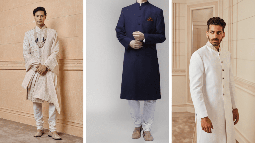 यह शेरवानी से प्रेरित लंबा और भव्य कुर्ता होता है, जिसमें भारी कढ़ाई और बटन होते हैं।